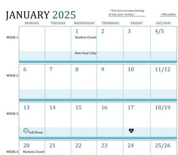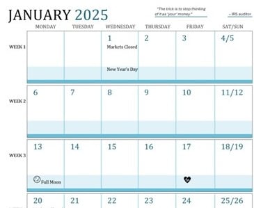 The 2025 Stock Trading Calendar highlights important dates and volatility periods, which allows you to plan trades with better timing.