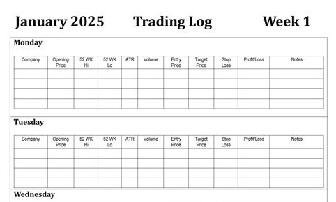 Weekly trading logs make it easy to record and review daily trades.